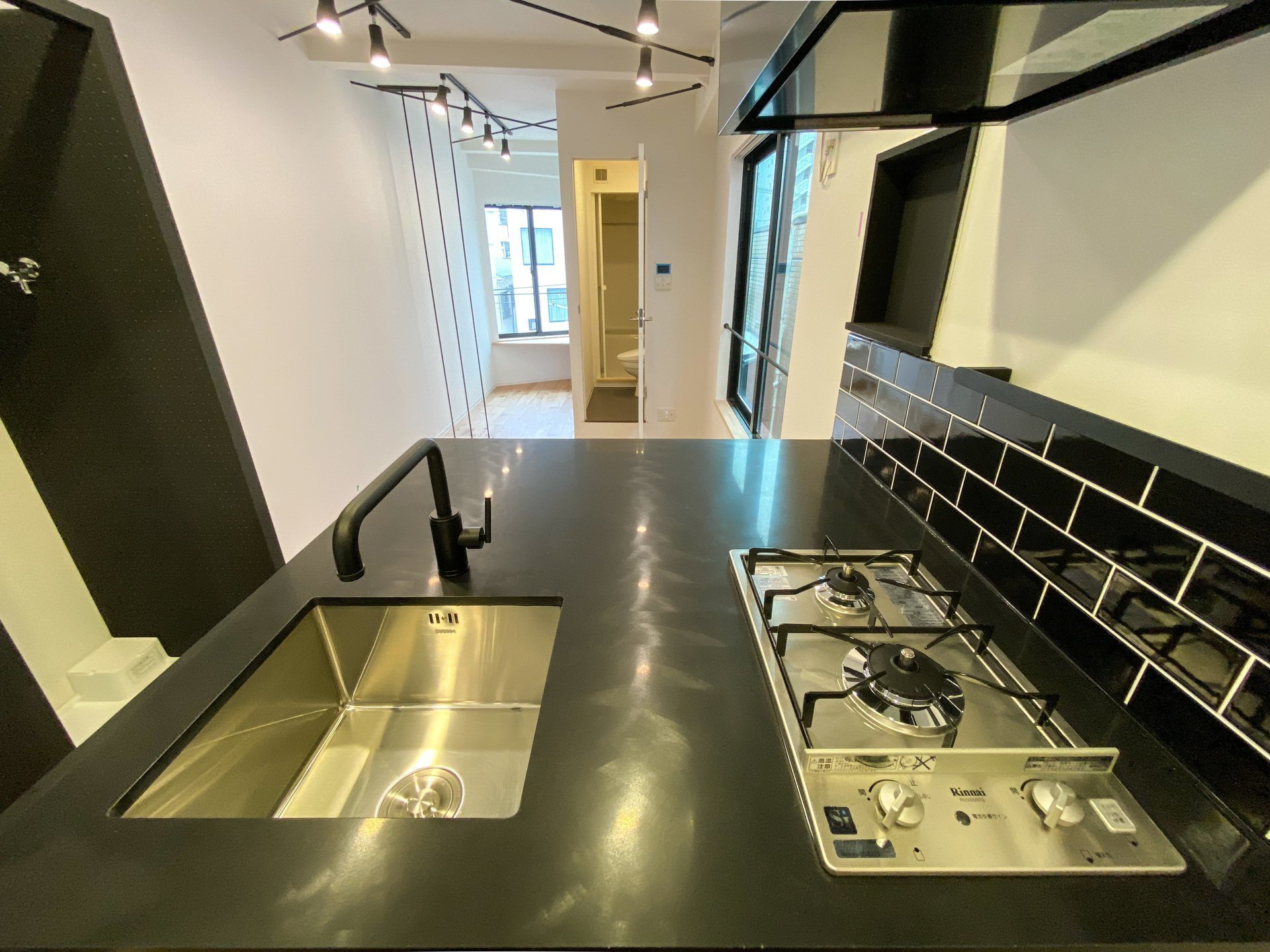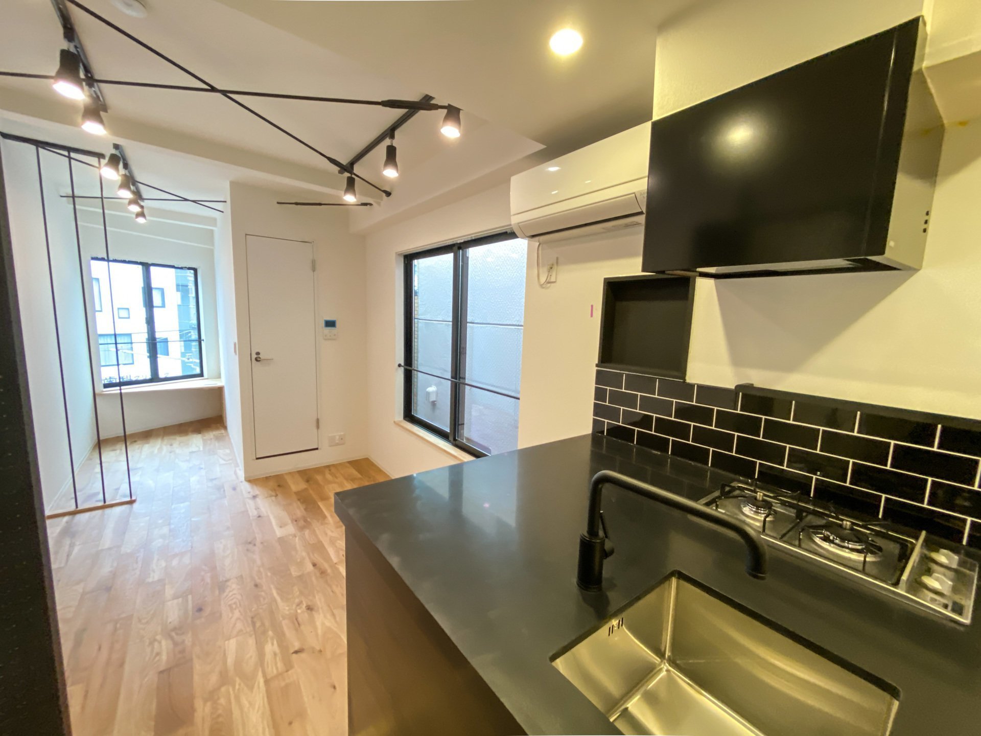 今月の8月に完成したばかりの無垢床デザイナーズ。黒と白に無垢の組み合わせがお部屋を引き締めながらも、温もりを感じさせるお部屋に。